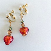 イタリアのガラス職人手作りのハート型のベネチアンビーズを主役にビーズやパールを渦巻きやらせん状にワイヤーで巻きつけました。