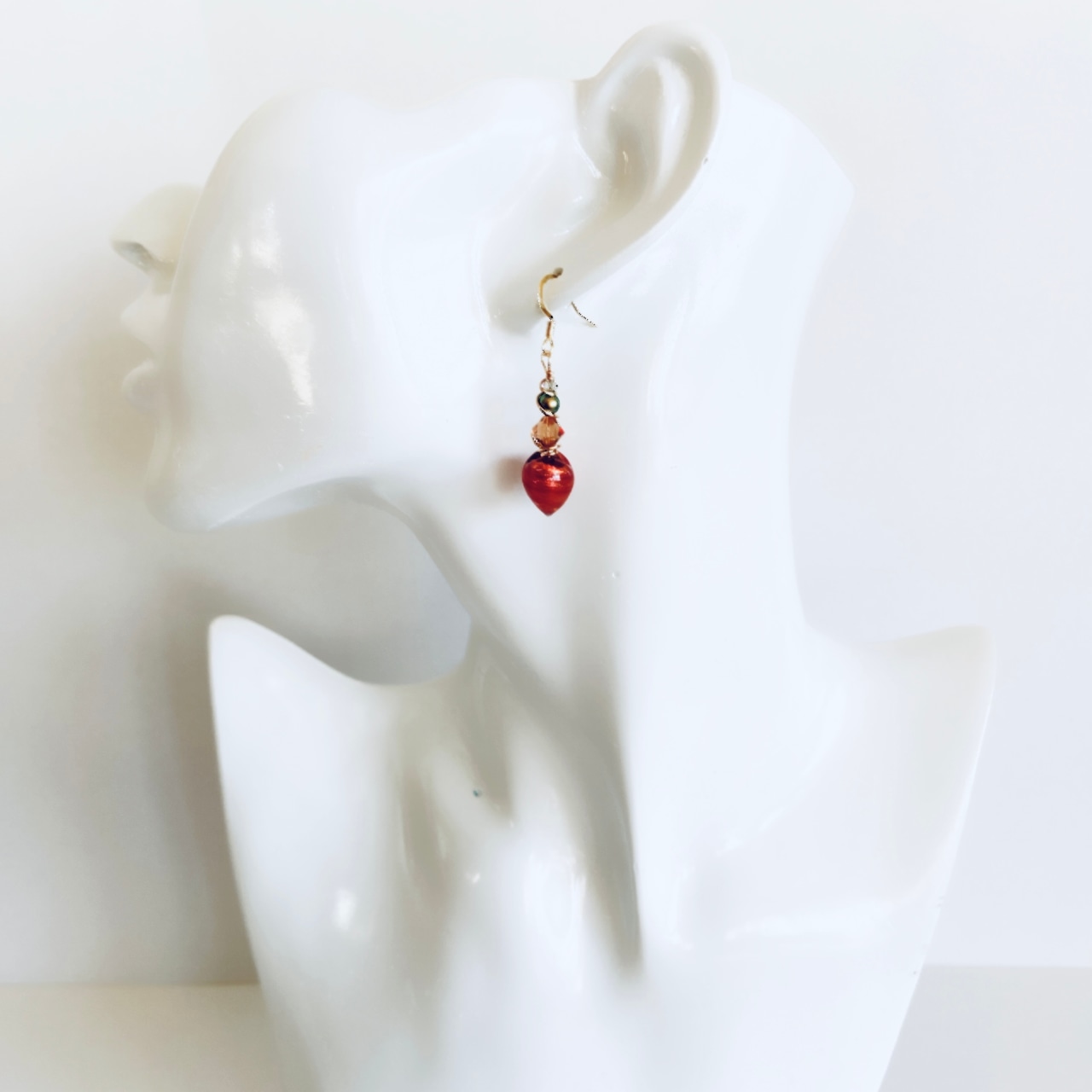 銀箔が透ける赤いハートのベネチアンビーズは、プロセルピナが手に持つザクロと同じ色。